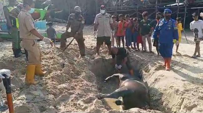 "Iya, yang satu sapi dari semalam ditemukan mati di tepi pantai, sudah dikuburkan tadi pagi sekitar pukul 07.00 Wita, lalu siang ini ditemukan lagi dua sapi mati mengapung di laut," ujar personel Polairud Polda Kaltim Bripka Taufik Ismail kepada detikcom, Senin (26/6/2023).