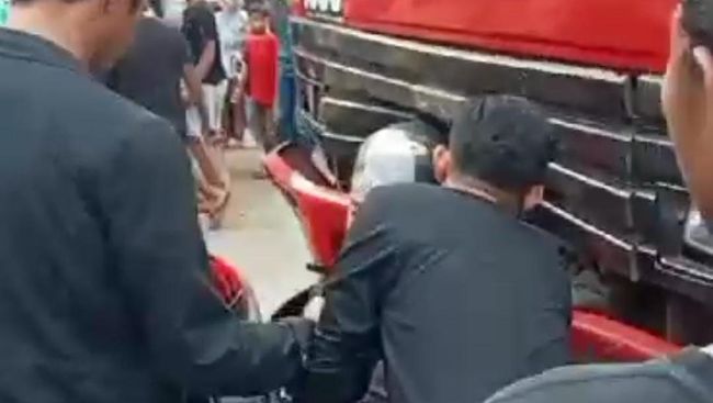 Sebuah mobil truk kontainer yang dikendarai Amar (26) menabrak 2 pemotor di Makassar, Sulawesi Selatan (Sulsel) karena mengalami rem blong. Seorang pengendara bernama Arming (33) tewas di tempat dalam insiden ini.