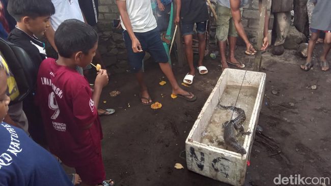 "Iya, di pak wakil pe belakang rumah. Cuman dia (buaya ditangkap) di sini, di mata air," ungkap seorang warga bernama Mohdar Junaidi kepada detikcom, Minggu (9/7/2023).
