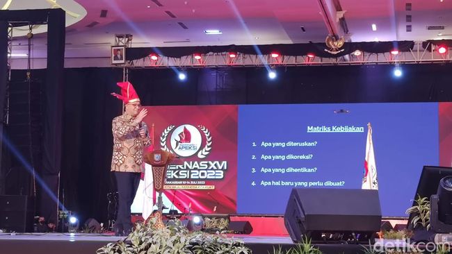 Hal tersebut diungkapkan Anies sebelum memaparkan materinya pada Rapat Kerja Nasional (Rakernas) XVI Asosiasi Pemerintah Kota Se-Indonesia (Apeksi) di Makassar, Sulawesi Selatan (Sulsel), Kamis (13/7/2023). Anies menjadi pembicara kedua dalam acara ini setelah sebelumnya Ganjar Pranowo.