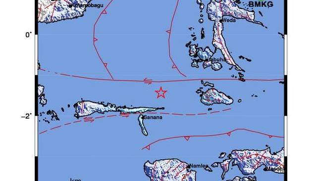 "80 Km timur laut Sanana, Malut. Kedalaman 10 Km," kata BMKG.