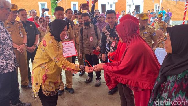 Menteri Sosial (Mensos) Tri Rismaharini menyerahkan kunci rumah kepada 26 kepala keluarga (KK) di tempat pembuangan sampah (TPA) Kendari, Sulawesi Tenggara (Sultra). Rumah-rumah tersebut merupakan milik warga pemulung yang menjadi korban kebakaran tahun lalu.
