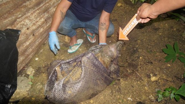 "Penggalian bangkai anjing dilakukan menggunakan pacul dan dimasukkan ke dalam kantong plastik," ujarnya.