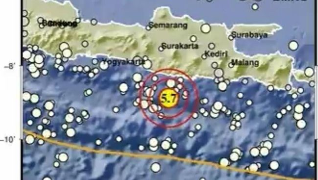 Gempa bumi berkekuatan magnitudo (M) 5,7 mengguncang Kabupaten Pacitan, Jawa Timur (Jatim). Gempa dilaporkan berpusat di laut.