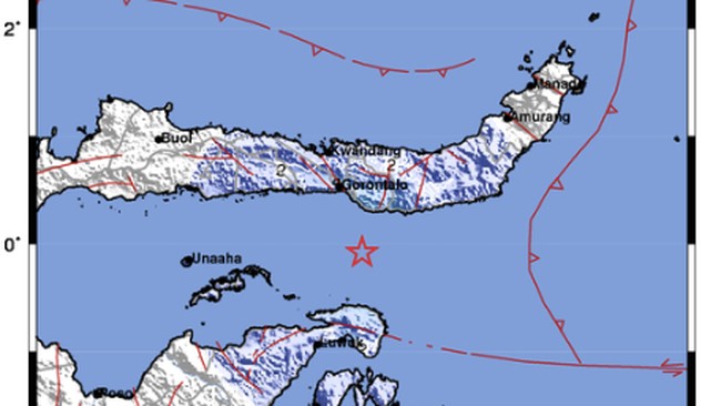 "58 km Barat Laut Gorontalo Utara, Gorontalo. Kedalaman 10 Km, tulis BMKG.