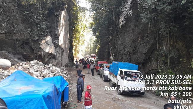 Diberitakan sebelumnya, Jalan Poros Maros-Bone di wilayah Camba atau Kappang, akan ditutup total. Penutupan dilakukan untuk memotong tebing batu lantaran ada retakan di sisi jalan.