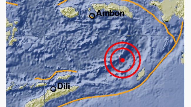 Titik gempa berada pada episentrum 5.68 derajat lintang selatan dan 130.06 derajat bujur timur. Pusat gempa dilaporkan berada di kedalaman 205 kilometer.
