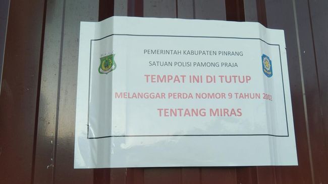 "Kemarin, kami melakukan penutupan Cafe D King karena melanggar Perda No 9 tahun 2022 tentang miras," kata Kepala Satpol PP Pinrang Muhadir Muddin kepada detikSulsel, Selasa (1/8/2023).