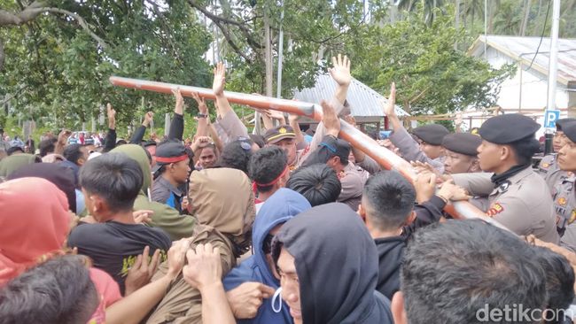 Namun kondisi seketika berubah saat massa aksi memaksa masuk ke kantor perusahaan sekitar pukul 15.30 Wita. Massa yang kesal tak kunjung ditemui oleh perwakilan perusahaan akhirnya terlibat saling dorong dengan polisi.
