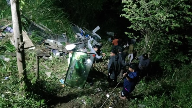 "Akibat kejadian tersebut suami istri bersama dengan warungnya serta penumpang yang berada dalam mobil langsung terjun ke jurang yang diperkirakan kedalamannya kurang lebih 300 meter," terangnya.
