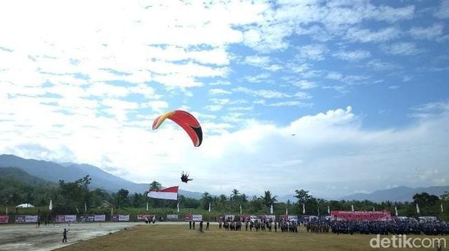 "Iya, tadi juga saya ikut terjun dengan atlet paralayang. Jujur ya saya baru pertama kali terjun paralayang dalam momentum HUT RI 17 Agustus," paparnya.