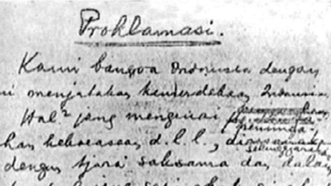 Tepat pukul 10.00 WIB, di Jalan Pegangsaan Timur No. 56, Jakarta naskah proklamasi kemerdekaan itu dibacakan. Kala itu, Soekarno didampingi Hatta serta disaksikan oleh sejumlah tokoh nasional.