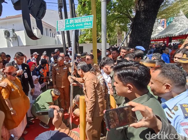 Pantauan detikSulsel di lokasi, Selasa (22/8/2023), peresmian perubahan nama jalan ini tepat berada di perempatan Jalan Cenderawasih menuju perempatan Jalan Pajongnga Dg Ngalle.