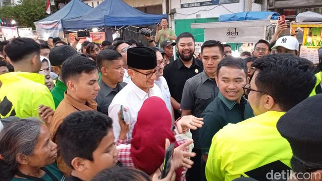 Saat berpindah dari satu warung ke warung lain, Sandiaga terlihat dikelilingi oleh masyarakat. Termasuk anak-anak yang beramai-ramai menyalami dan mencium tangannya.