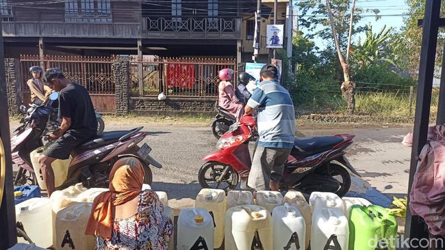 "Saya ke sini dua kali ma'laling (bolak-balik membawa) jeriken. Pagi untuk (persediaan siang-sore), baru malam lagi (untuk persediaan sampai besok)" tambahnya.