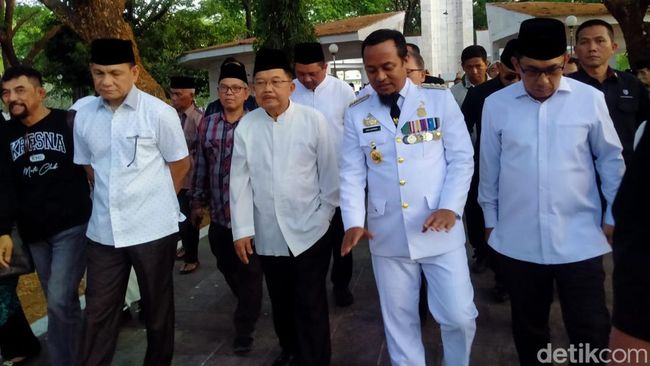 Wakil Presiden RI ke-10 dan ke-12, Jusuf Kalla (JK) menghadiri pemakaman Gubernur Sulawesi Selatan (Sulsel) Periode 2003-2008 Amin Syam di Taman Makam Pahlawan (TMP) Panaikang, Makassar. Pemakaman berlangsung secara militer yang dihadiri pejabat Sulsel.