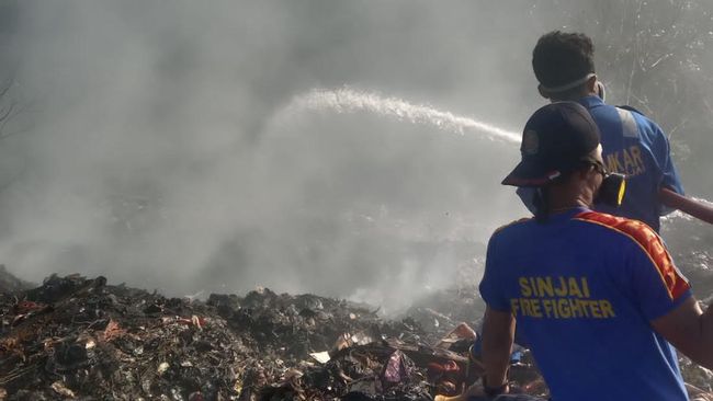 Tempat pembuangan akhir (TPA) Tondong, Kabupaten Sinjai, Sulawesi Selatan (Sulsel) kebakaran. Damkar Sinjai menerjunkan tiga armada dengan 20 personel untuk memadamkan api di lokasi.