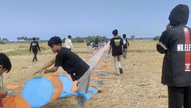 Seorang warga di Kabupaten Bone, Sulawesi Selatan (Sulsel) bernama Adam Asdar (27) membuat layang-layang sepanjang 115 meter. Sebanyak 36 orang dikerahkan untuk menerbangkan layangan tersebut.