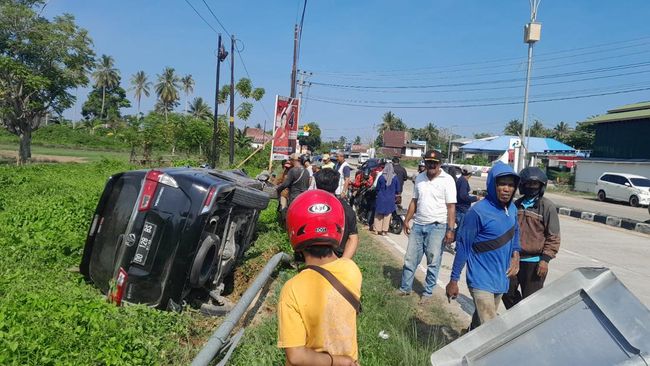 "Kemudian mobil mengalami off control dan menabrak rambu lalu lintas di sebelah kiri hingga kendaraan tersebut terbalik," terangnya.