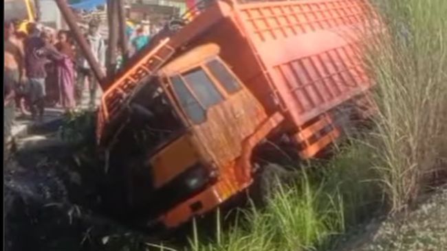 Mobil truk tanpa muatan yang dikemudikan pria bernama Muhiddin (38) terjun ke selokan di Kota Makassar, Sulawesi Selatan (Sulsel). Kecelakaan itu terjadi diduga akibat rem blong.