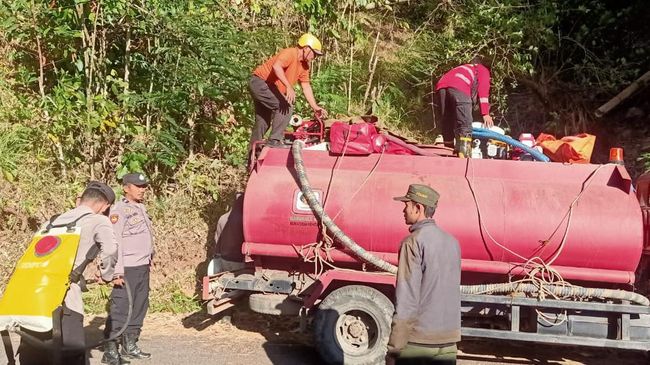 "Saat ini ada tiga mobil Damkar yang standby. Mobil Damkar belum bisa sampai ke titik api, makanya kita gunakan pipa yang panjang untuk memadamkan titik-titik api," sambung Sudirman.