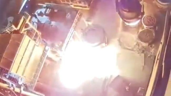 Tiba-tiba ledakan pun terjadi. Seiring letupan terjadi, para mekanik satu per satu keluar dari pipa penyaringan dalam kondisi mengalami luka bakar.