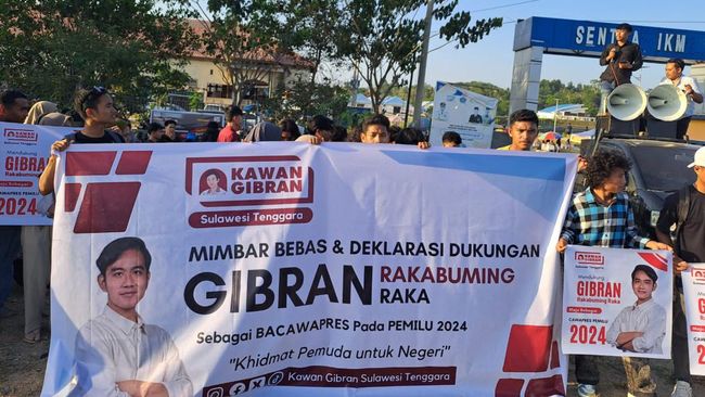 Deklarasi Kawan Gibran tersebut berlangsung di Kolam Retensi dan Pusat Olahraga Kota Kendari, Jumat (13/10) sekitar pukul 13.30 Wita. Kegiatan tersebut bertajuk 'Khidmat Pemuda untuk Negeri'.