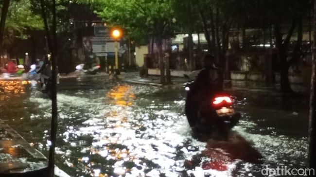 "Banjir juga, karena selokan tersumbat sampah. Tapi tidak papa yang penting hujan dulu ini," ucapnya.