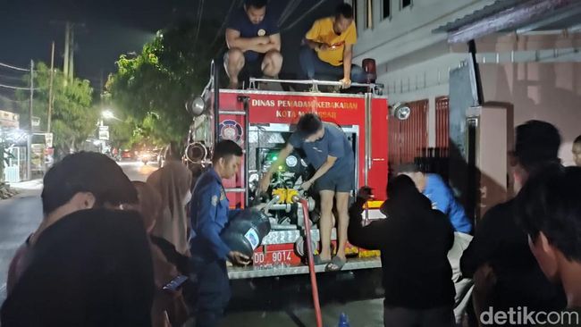 Pantauan detikSulsel, Kamis (19/10/2023) malam di BTN Antara, Kelurahan Tamalanrea Indah, Kecamatan Tamalanrea, warga antrean bantuan air bersih. Satu unit mobil pemadam kebakaran dengan kapasitas 4.000 liter air diterjunkan.