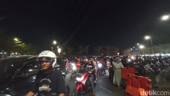 Pantauan detikSulsel di lokasi, Sabtu (21/10/2023) pukul 20.20 Wita, titik terparah kemacetan terjadi di pertigaan Jalan Lamadukelleng-Jalan Haji Bau-Jalan Metro Tanjung Bunga. Arus lalu lintas macet hingga 1 kilometer.