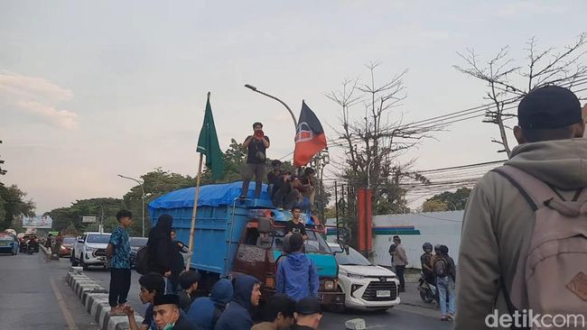 Pantauan detikSulsel di lokasi, Jalan Sultan Alauddin, Senin (23/10/2023), tampak sejumlah massa mahasiswa berkumpul di jalanan pada pukul 17.00 Wita. Mereka menutup jalan dengan menggunakan mobil truk sambil berorasi.