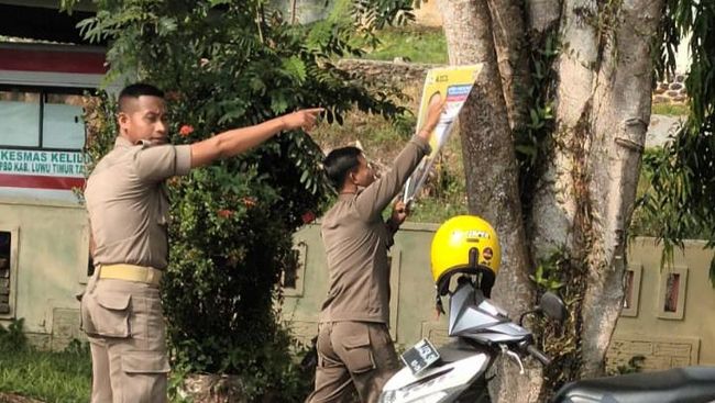 Pemkab Luwu Timur, Sulawesi Selatan (Sulsel) menertibkan alat peraga kampanye berupa spanduk atau baliho calon legislatif (caleg) di jalan dan yang dipaku di pohon. Satpol PP telah mencopot 21 baliho caleg.