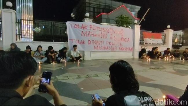 Aksi damai tersebut berlangsung di trotoar depan Kantor Wali Kota Palopo, Senin (23/10) mulai pukul 18.30 sampai 20.00 Wita. Selain menyalakan lilin, massa aksi juga membawa spanduk besar yang bertuliskan 'Penolakan putusan (MK) Mahkamah Keluarga dan tolak dinasti politik Mahkamah Konspirasi'.