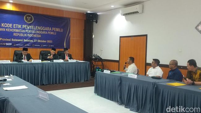 Pantauan detikSulsel di Kantor Bawaslu Sulsel, Jumat (27/3/2023), sidang pemeriksaan terhadap Hasanuddin dimulai pukul 09.00 Wita. Hasanuddin sebagai teradu tampak hadir di ruang sidang dengan mengenakan baju putih.