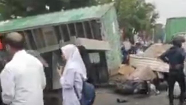 "Mobil truk kontainer bergerak dari arah utara ke selatan, dari arah atas jembatan galangan kapal diduga rem blong," kata Amin Toha.