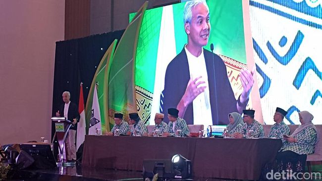 Bakal calon presiden (Bacapres) Ganjar Pranowo menghadiri Silaturahmi Kerja Nasional (Silaknas) Ikatan Cendekiawan Muslim Indonesia (ICMI) di Makassar, Sulawesi Selatan (Sulsel). Ganjar menyampaikan gagasannya mengenai potensi pembangunan dan ekonomi di Indonesia timur.