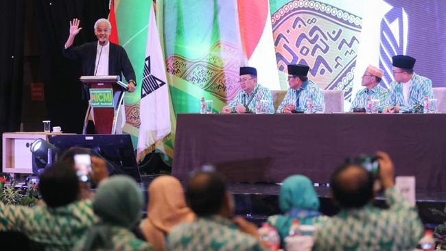 Calon Presiden 2024 Ganjar Pranowo menghadiri acara Silaknas ICMI di Makassar, Sabtu (4/11). Di hadapan para cendekiawan muslim se-Indonesia itu, Ganjar memaparkan visi misinya untuk membangun Indonesia, salah satunya adalah mengatasi kemiskinan.