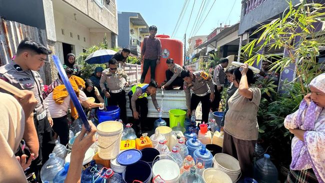 Jajaran Satlantas Polrestabes Makassar turut turun tangan memberikan solusi terhadap masalah kekeringan yang diderita warga belakangan ini. Polisi sudah membagikan 5.000 air bersih kepada warga terdampak kekeringan akibat kemarau panjang.