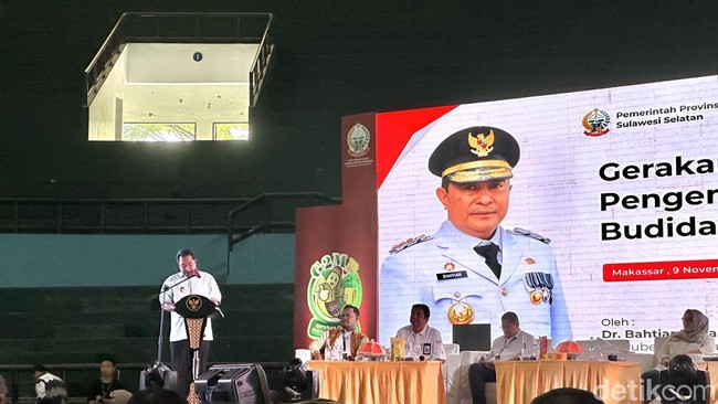 Pj Gubernur Sulawesi Selatan (Sulsel) Bahtiar Baharuddin geram mic yang digunakannya saat sambutan di depan Forkompimda bermasalah. Bahtiar pun menyentil Kepala Dinas Tanaman Hortikultura dan Perkebunan (TPHbun) Imran Jausi sebagai penyelenggara.