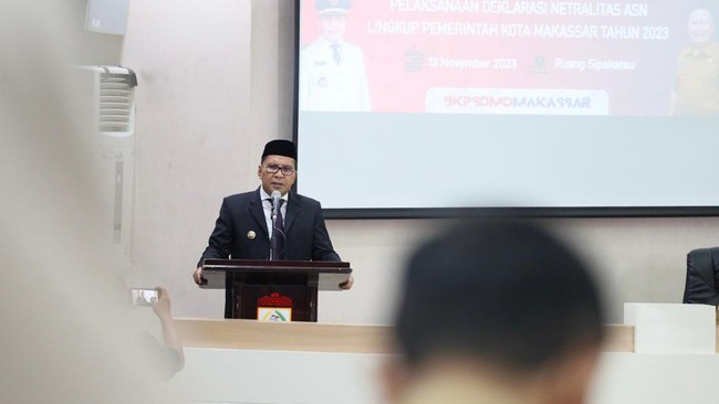 Pemerintah Kota (Pemkot) Makassar, Sulawesi Selatan (Sulsel) menggelar deklarasi netralitas aparatur sipil negara (ASN). Wali Kota Makassar Moh Ramdhan 'Danny' Pomanto menegaskan akan memberi sanksi kepada ASN yang berpihak.
