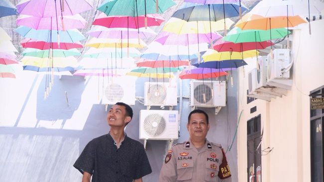 Polres Gowa, Sulawesi Selatan (Sulsel) menghadirkan spot foto payung warna warni di sekitar area ruang pelayanan publik bagi masyarakat. Spot foto ini diharapkan dapat menghilangkan kesan seram saat berada di kantor polisi.