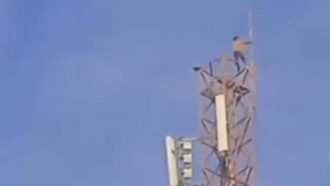 Dalam video yang dilihat detikcom, terlihat Colleng yang sempat berdiri di puncak menara sembari berpegangan pada sebatang besi. Aksinya seketika membuat warga setempat menjadi histeris.