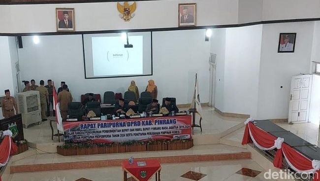 Bupati Pinrang, Sulawesi Selatan (Sulsel) Irwan Hamid beserta wakilnya, Alimin, absen saat rapat paripurna pemberhentian masa jabatan. Keduanya diketahui tidak hadir karena melakukan kunjungan kerja di Bali.