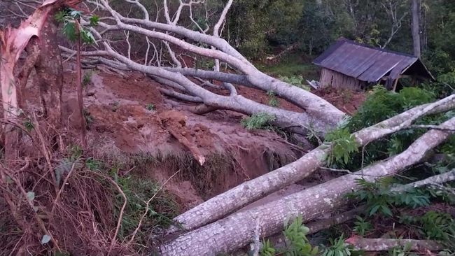 Bencana longsor menerjang 2 rumah di Jalan Poros Sinjai-Malino, Sulawesi Selatan (Sulsel). Insiden ini sempat membuat akses lalu lintas lumpuh karena material longsor menutupi jalan.