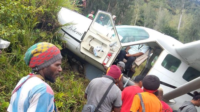 Maskapai Dabi Air tergelincir dan menabrak bukit setelah mendarat di Bandara Kogapa, Kabupaten Intan Jaya, Papua Tengah. Insiden itu membuat pilot dan 2 penumpang mengalami luka.