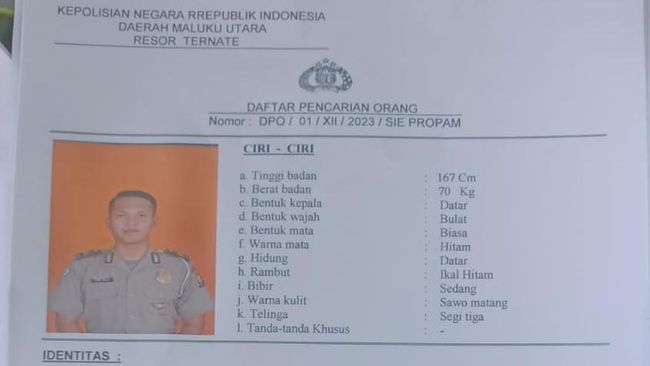 Kasi Humas Polres Ternate Iptu Wahyuddin mengatakan surat DPO dikeluarkan oleh Propam pada 4 Desember 2023. Surat DPO tersebut diketahui memiliki nomor DPO/01/XII/2023/SIE/Propam.
