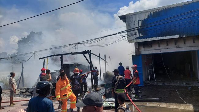Kebakaran di Kabupaten Mimika, Papua Tengah, menghanguskan dua unit bangunan berupa kios dan bengkel. Insiden itu berawal saat anak pemilik bengkel bermain petasan di lokasi.