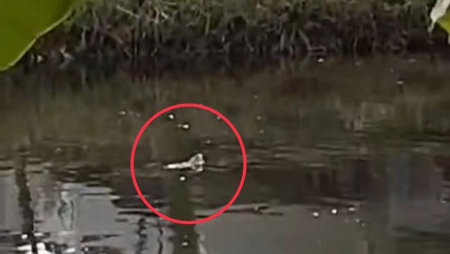 Buaya itu terlihat muncul di tengah-tengah kanal. Dalam narasi video seorang warga seolah-olah memanggil buaya tersebut untuk menunjukkan wujudnya di daratan.