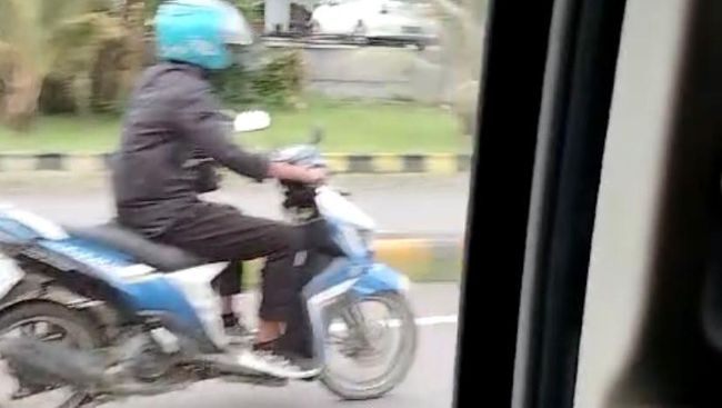 Dalam video yang dilihat detikSulsel, pria tersebut berkendara seorang diri menggunakan motor berwarna biru putih. Saat berada di pintu gerbang Tol Kaluku Bodoa, pemotor tersebut diberhentikan oleh petugas tol.