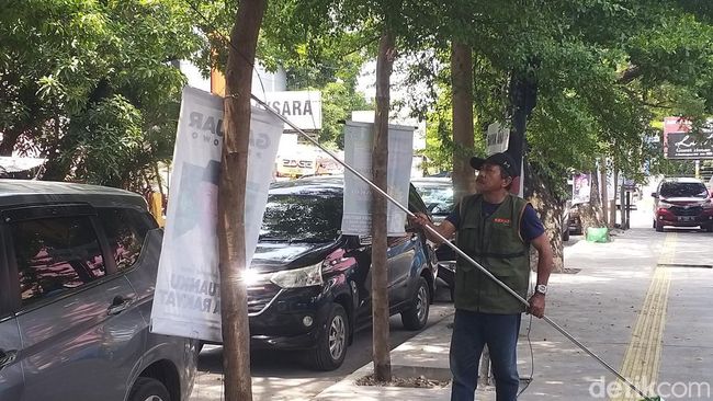 Dinas Lingkungan Hidup (DLH) Kota Makassar, Sulawesi Selatan (Sulsel) kembali turun menertibkan alat peraga kampanye (APK) yang menempel di pepohonan. Plt Kepala DLH Kota Makassar Ferdi Mochtar mengaku miris melihat kondisi pohon yang dipenuhi APK Caleg dengan cara dipaku.